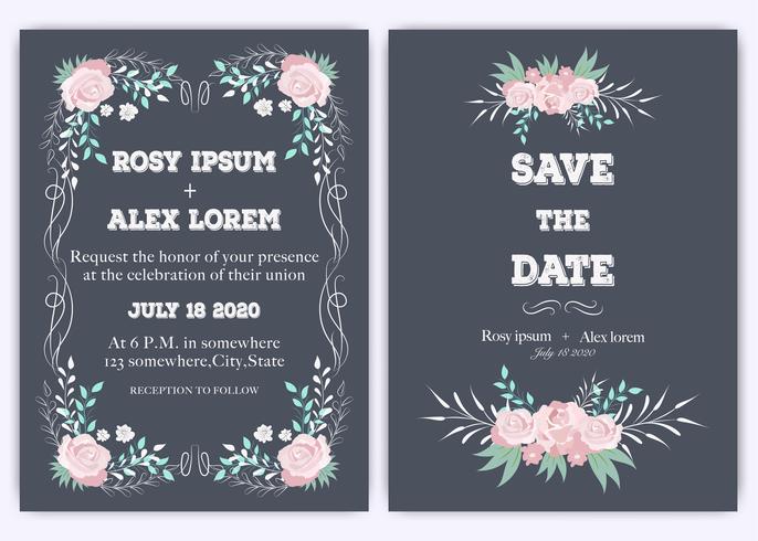 Tarjeta Y Marco De Invitacion De Boda Floral Elegante