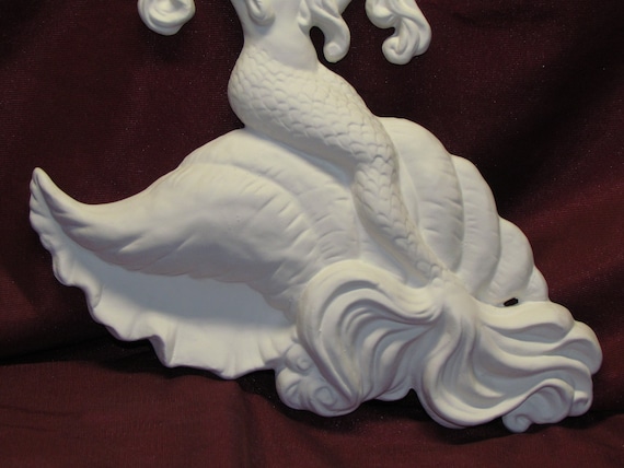 Ceramic Bisque U Paint Mermaid Sitting On Seashell Wall Hanging Ready To Paint Unpainted Diy Fantasy Vintage