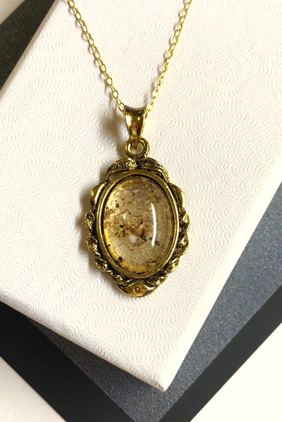 Antique Gold Cremation Ash Necklace Memorial Necklace Ash Pendant Pet Ash Keepsake Cremation Jewelry Memorial Ash Cremation Necklace